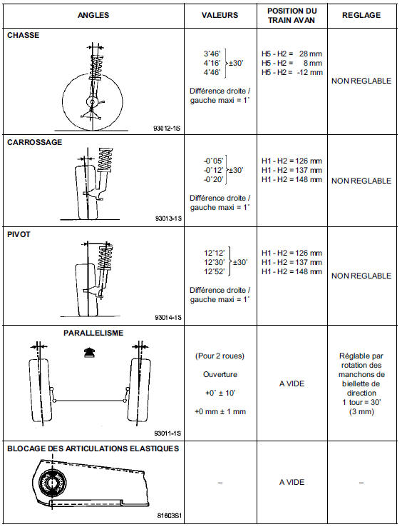 Procédure d'apprentissage des positions pied à fond et pied levé de la