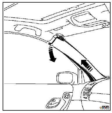 Mettre en place une clé plate afin de verrouiller l'agrafe de maintien de l'airbag sur la poutre, ou déposer la vis de fixation (selon version).