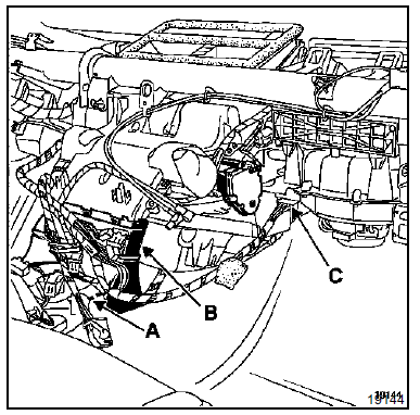 Débrancher le connecteur noir (C) du groupe motoventilateur / module de puissance.