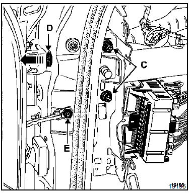 NOTA : Le verrouillage du boîtier électronique d'airbag permet également de déverrouiller le verrou électrique de colonne de direction.