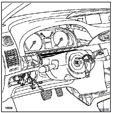 Débrancher les connecteurs de l'airbag de volant et les connecteurs des touches du régulateur de vitesse (selon version).