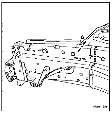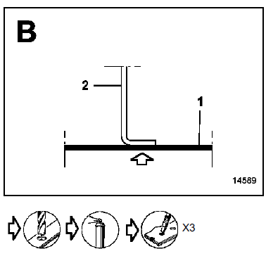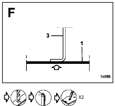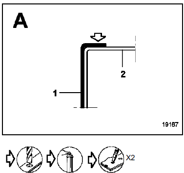 Le remplacement de cette pièce est une opération complémentaire au remplacement du renfort de coté d'auvent pour une collision latérale et au pied avant pour une collision latérale avant.