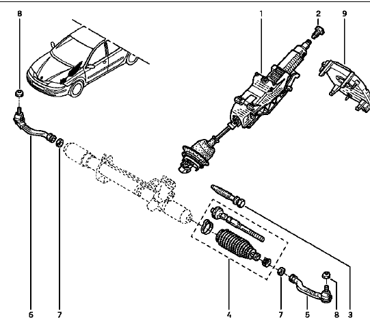 Dans le compartiment moteur, déposer la vis et l'écrou de la chape du boîtier de direction.