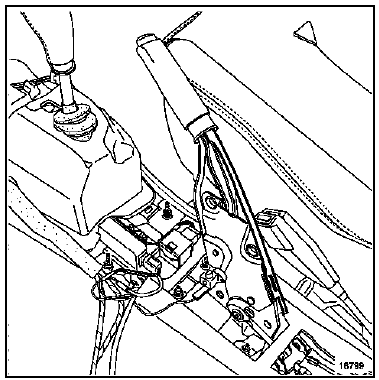 Régler le frein à main afin de mettre en contact l'embout avec le levier sans déplacement de celui-ci.