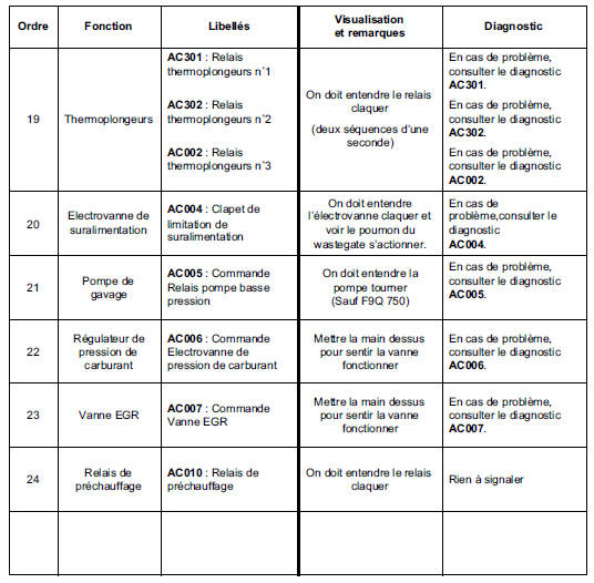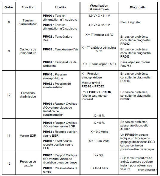 Conditions d'exécution : Moteur chaud au ralenti, sans consommateur.