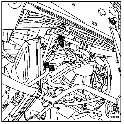 Déposer la vis de fixation du support de tuyau de direction assistée (5).