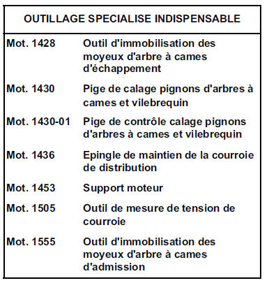 Engager la courroie de distribution sur le pignon de vilebrequin et l'immobiliser à l'aide du Mot. 1436.