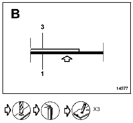Cette opération permet de rattraper l'écart entre la tôle du renfort et la traverse extrême arrière et d'éliminer les risques de bruyance possibles.