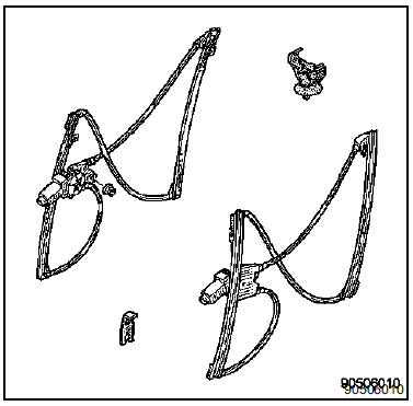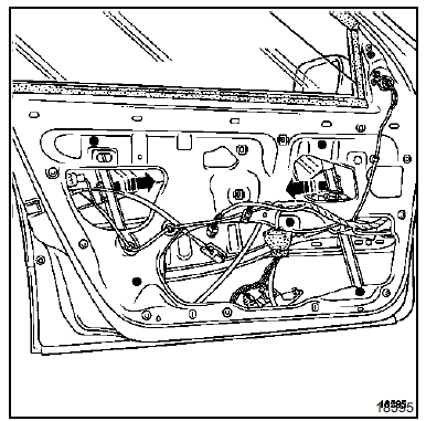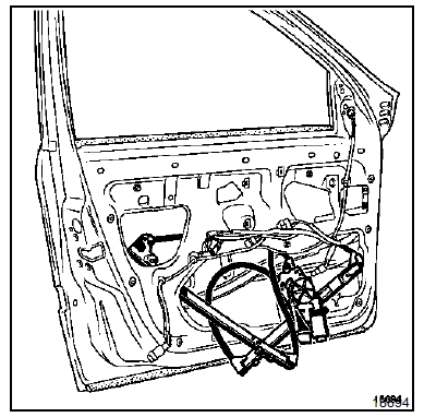 La dépose du mécanisme de lève-vitre électrique nécessite la dépose de la garniture intérieure de porte (consulter le chapitre carrosserie).