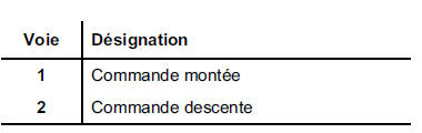 Dans ce cas, les interrupteurs ont une double course. L'arrêt de la vitre est obtenu par détection de butée haute ou basse, par une autre commande ou après une temporisation de 10 secondes.