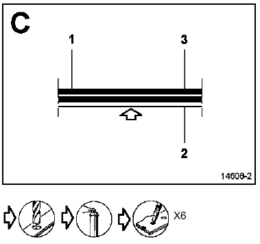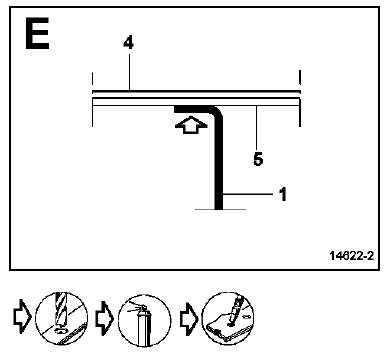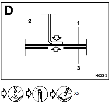 IMPORTANT : la coupe s'effectue dans la zone X2 entre le renfort de longeron et le trou pilote.