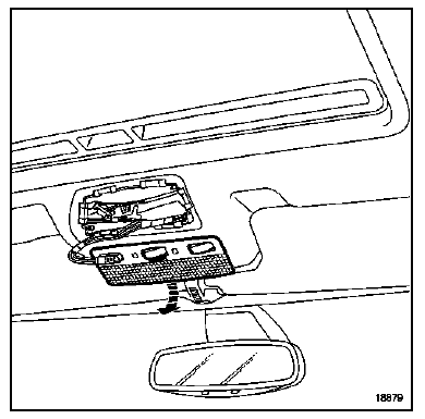Déposer les trois vis de fixation (B) étoile (T 20), puis dégager le moteur par l'ajourage de l'éclaireur de plafonnier.