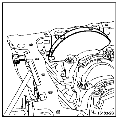 | ATTENTION : il est impératif de dégraisser l'extrémité du vilebrequin, l'alésage du pignon de vilebrequin et les faces d'appui de la poulie de vilebrequin afin d'éviter un glissement entre la distribution et le vilebrequin risquant d'entraîner la destruction du moteur. |