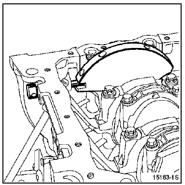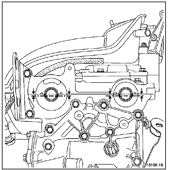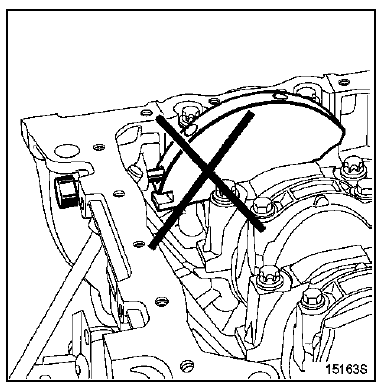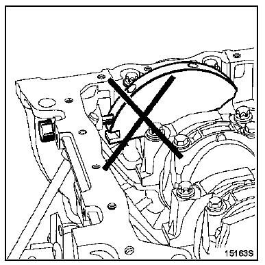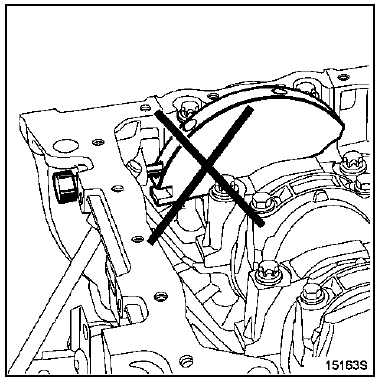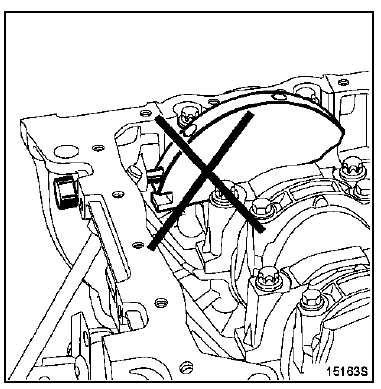 | ATTENTION : il est impératif de dégraisser l'extrémité du vilebrequin (côté distribution), l'alésage et les faces d'appui du pignon de distribution, les faces d'appui de la poulie accessoires ainsi que les extrémités des arbres à cames d'échappement et du déphaseur d'arbre à cames d'admission; ceci afin d'éviter un glissement entre la distribution, le vilebrequin, les poulies des arbres à cames d'échappement et le déphaseur d'admission, risquant d'entraîner la destruction du moteur. |