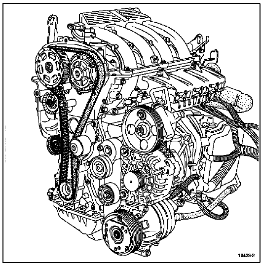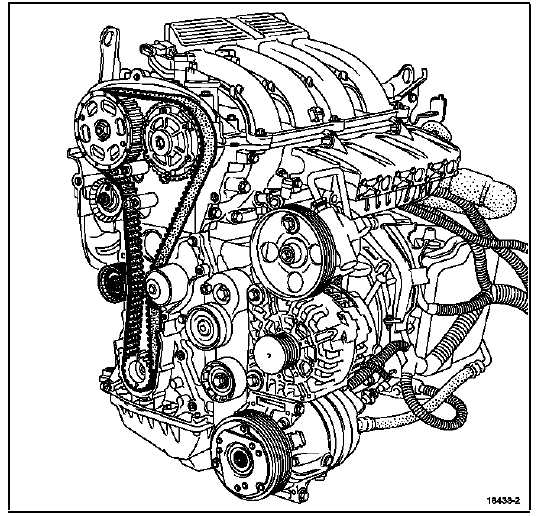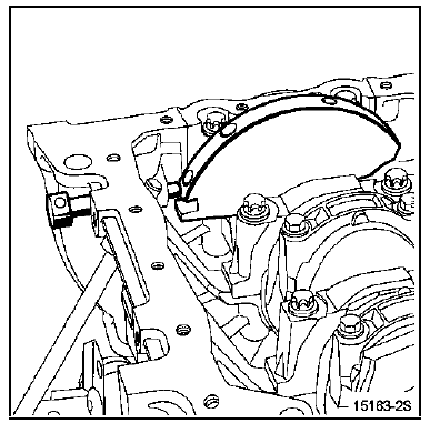La deuxième procédure s'applique pour les remplacements de tout élément se trouvant dans la façade de distribution et qui ne nécessite pas le desserrage de la poulie d' arbre à cames d'échappement et du déphaseur d'arbre à cames d'admission.