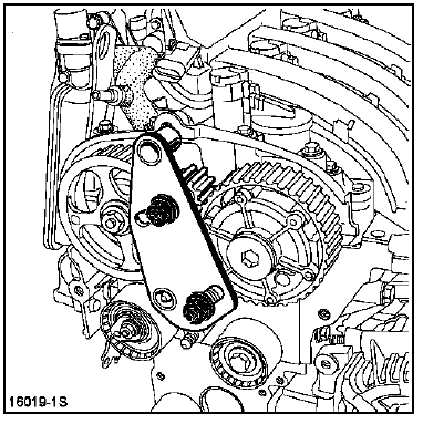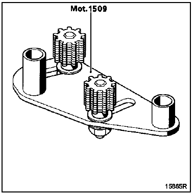 Mettre en place l'outil de blocage des poulies des arbres à cames Mot. 1509 équipé du complément du Mot. 1509-01.