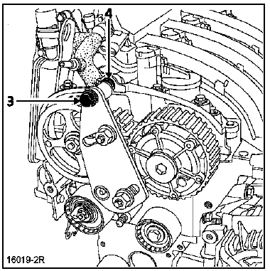 La première procédure s'applique pour les remplacements de tous les éléments qui nécessitent le desserrage de la poulie d'arbre à cames d'échappement et du déphaseur d'arbres à cames d'admission.