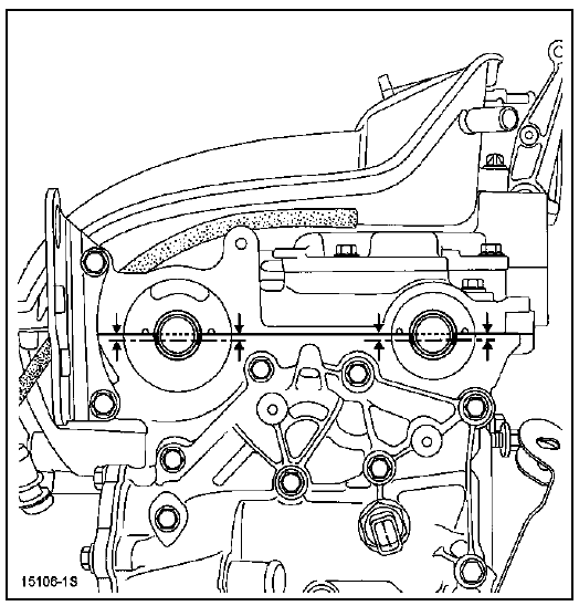 Retirer l'ancien écrou de la poulie, l'ancienne vis du déphaseur et les remplacer par écrou et une vis neufs (laisser un jeu de 0,5 à 1 mm entre l'écrou ou la vis et les poulies d'arbres à cames).