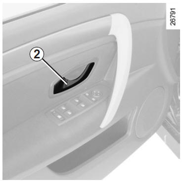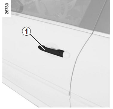 Portes déverrouillées ou carte RENAULT " mains libres " sur vous, saisissez la poignée 1 et tirez vers vous.