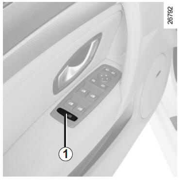 Le conducteur peut autoriser le fonctionnement des portes arrière et, suivant véhicule, des lève-vitres en appuyant sur le contacteur 1 côté dessin.