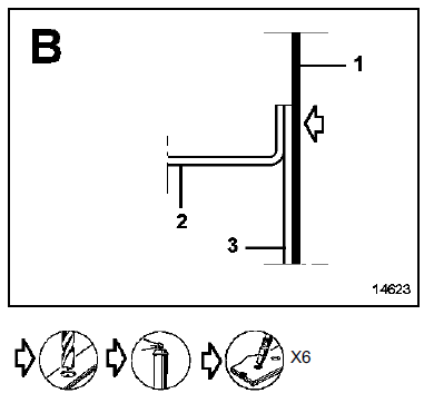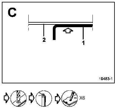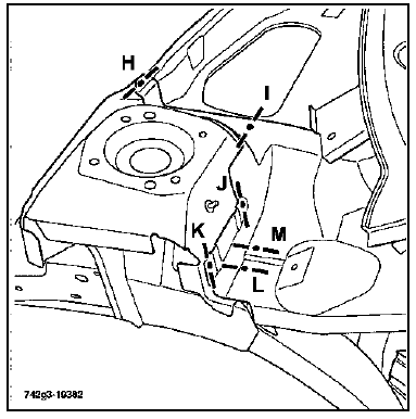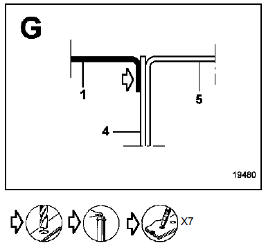 Le remplacement de cette pièce est une opération complémentaire au remplacement du coté d'auvent, du support moteur (côté droit) et de la partie avant de passage de roue pour une collision avant et à la fermeture de bas de caisse pour une collision latérale.