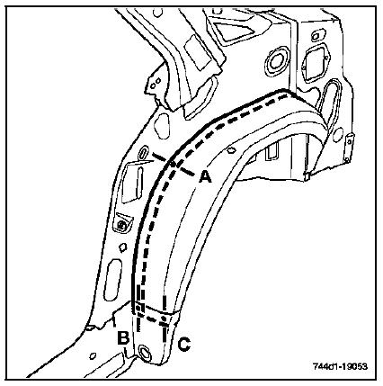 Le remplacement de cette pièce est une opération complémentaire au remplacement du panneau d'aile et du renfort de custode pour une collision latérale.