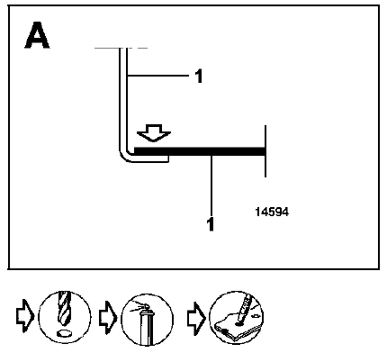 les trois vis et l'agrafe inférieure (A) de fixation des