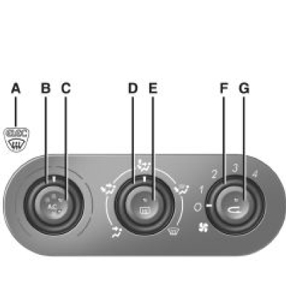 Il est donc conseillé de repasser en fonctionnement normal (air extérieur) en appuyant de nouveau sur la touche (G) dès que le recyclage d'air n'est plus nécessaire.