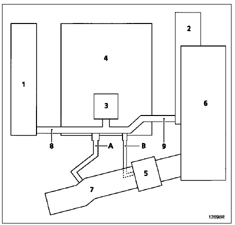 Ce circuit est utilisé pour les moyennes et fortes charges. Les vapeurs sont réaspirées par la dépression régnant dans la canalisation d'air (7).