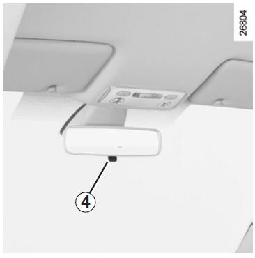 En conduite de nuit, pour ne pas être ébloui par les projecteurs d'un véhicule suiveur, basculez le petit levier 4 situé derrière le rétroviseur.