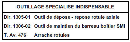 Dans cette position, débloquer la rotule axiale à l'aide de l'outil Dir. 1305-01.