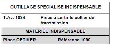 D'autre part, le maintien de la transmission sur la presse sera assuré sur la gorge avec un outil du type FACOM U53T, pour éviter les détériorations du joint côté roue.