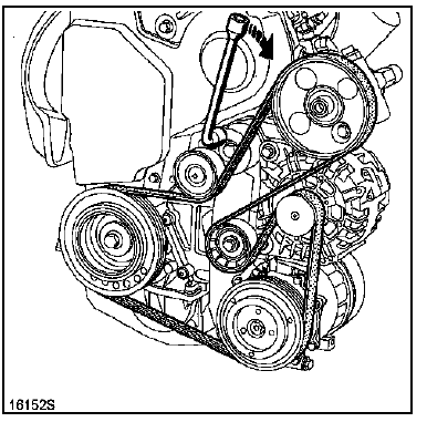 Faire pivoter le galet tendeur automatique de la courroie dans le sens indiqué ci-dessous à l'aide d'une clé de 16 mm.