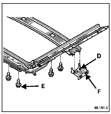 Commencer par serrer les quatre vis (D) (M8) de la traverse centrale, puis serrer les fixations (E) du toit (vis M5 tête hexagonale de 8) en procédant par diagonale.